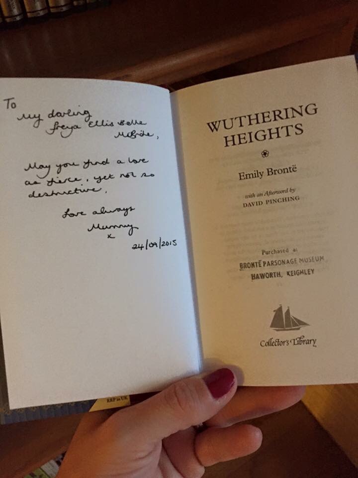 IMG_0826I finished off the tour, and bought a few things in the gift shop including a copy of Wuthering  Heights which I planned to write an inscription in for Freya. I don’t know why my heart felt so heavy as we left. Moments like these with Freya are more special to me than any other moments in my life. I know that might sound bad because I have a husband and two other children; they are special to me too. But time with them tends to be moments of madness, of getting ready for school, of bedtime routines. I have become quite accustomed to just being with Freya. We are like two halves of a whole who are only truly content when we are linked together in some tender moment. She stares, so intently sometimes that I wonder if she can see into my soul. And I’m reminded of an earlier post, “cleansing the soul” that I wrote before all this, before KD.